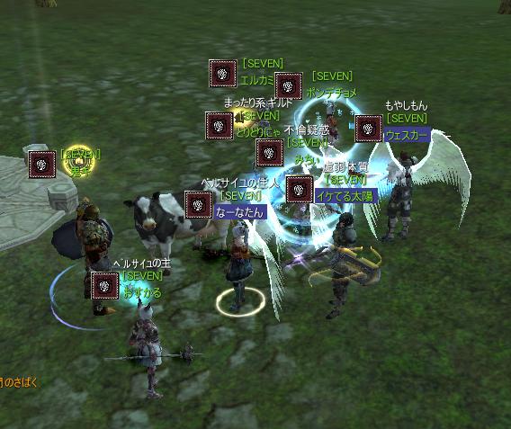 特に名所がないので 牛に集まるSEVEN。